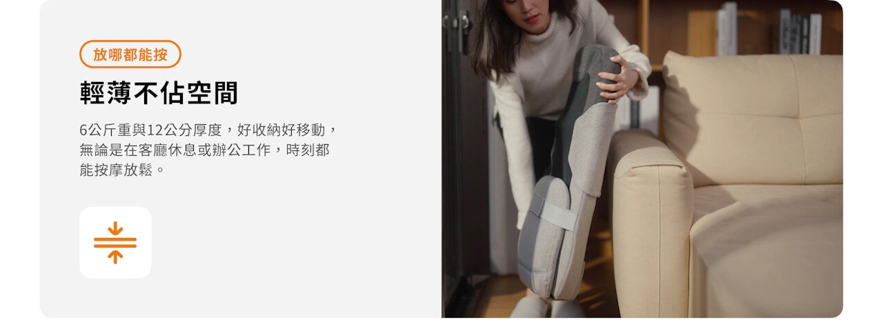 ·6公斤重、12公分厚度,輕薄設計,不佔空間