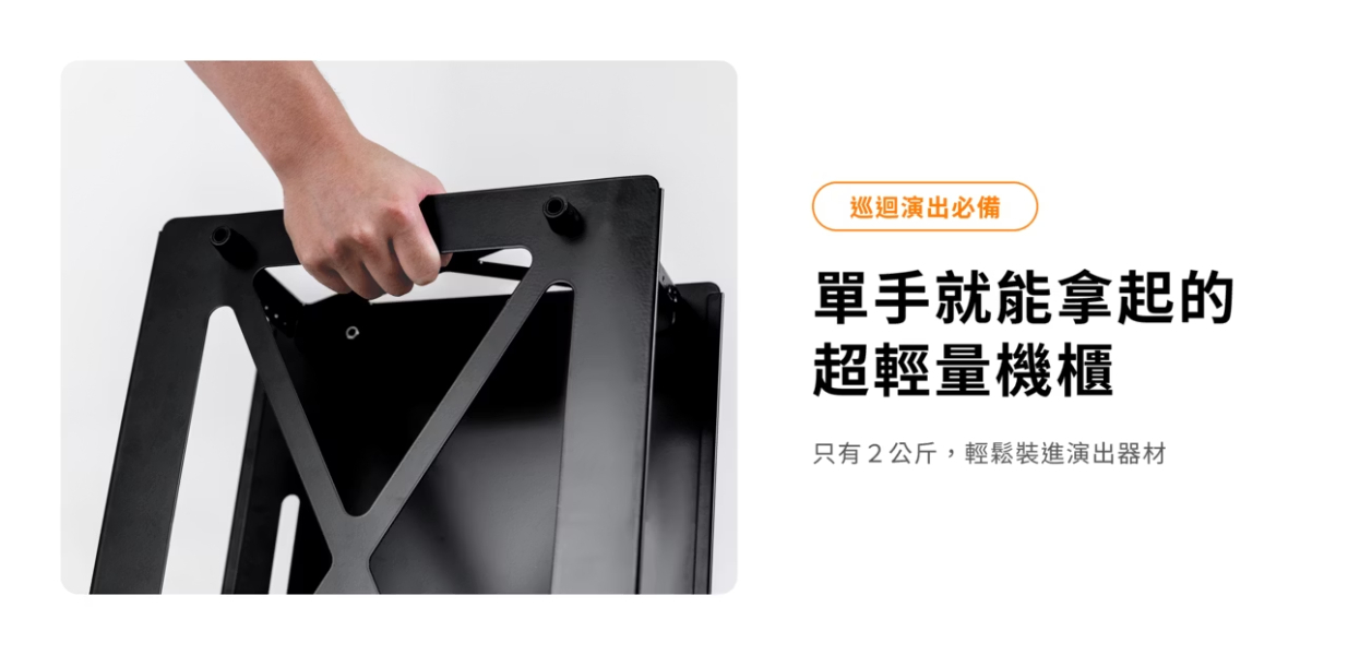 專為巡迴演出設計的旅行機櫃,一手就能拿起的輕量。