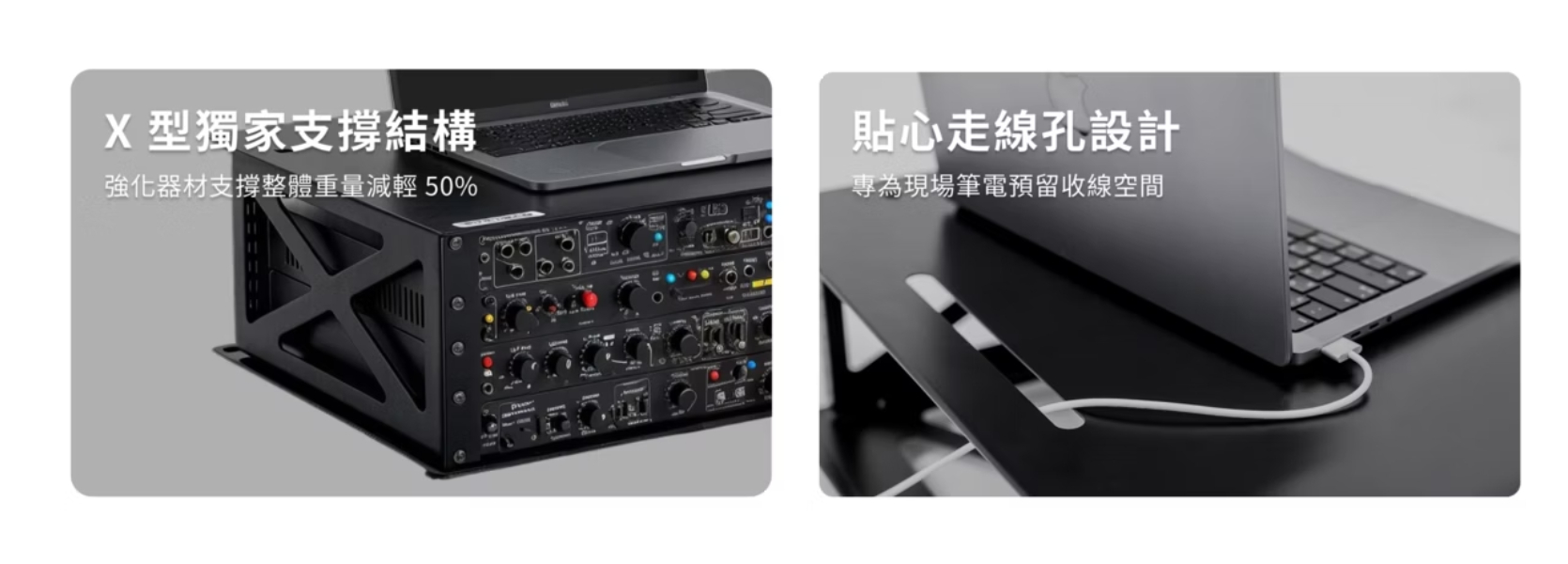 採用鋁合金 X 型骨架,兼顧輕量與強韌,讓你喜歡的設備能夠跟著你到天涯海角表演。