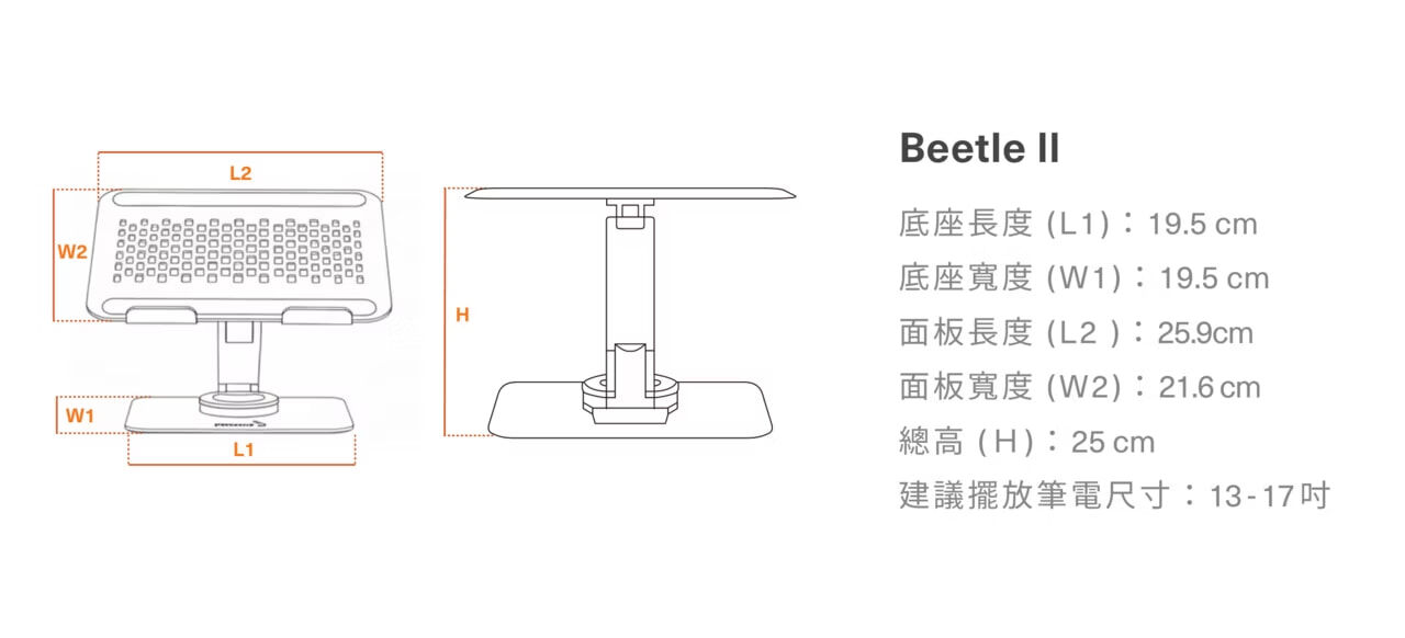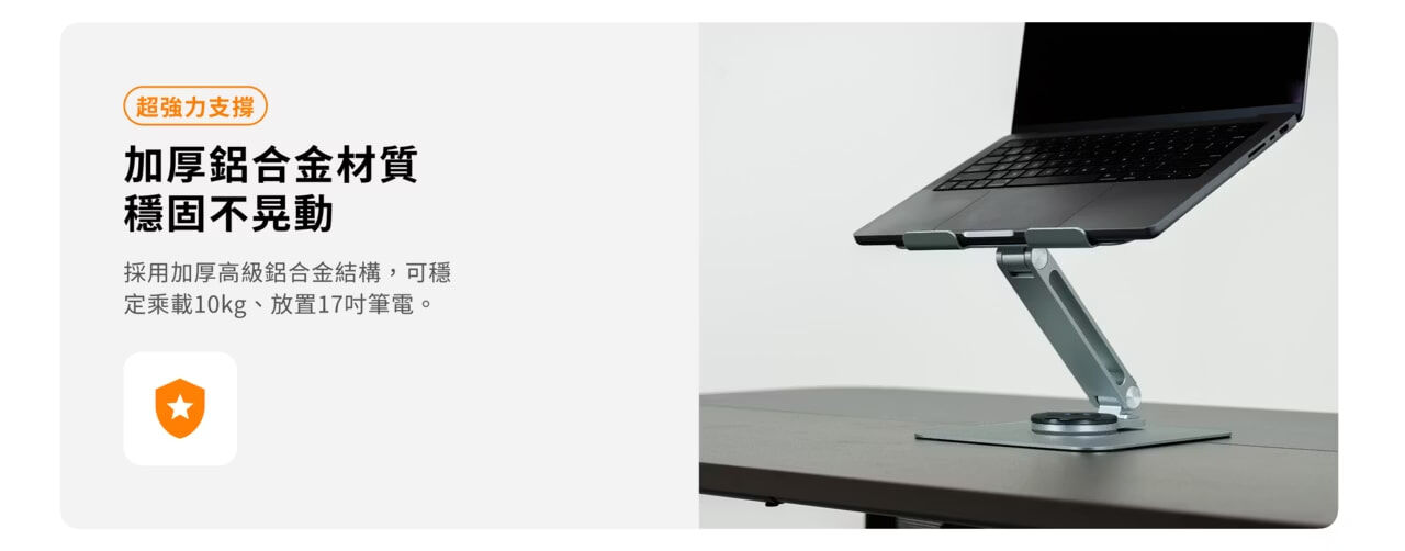 •加厚鋁合金超強支撐,可放置13-17吋筆電。