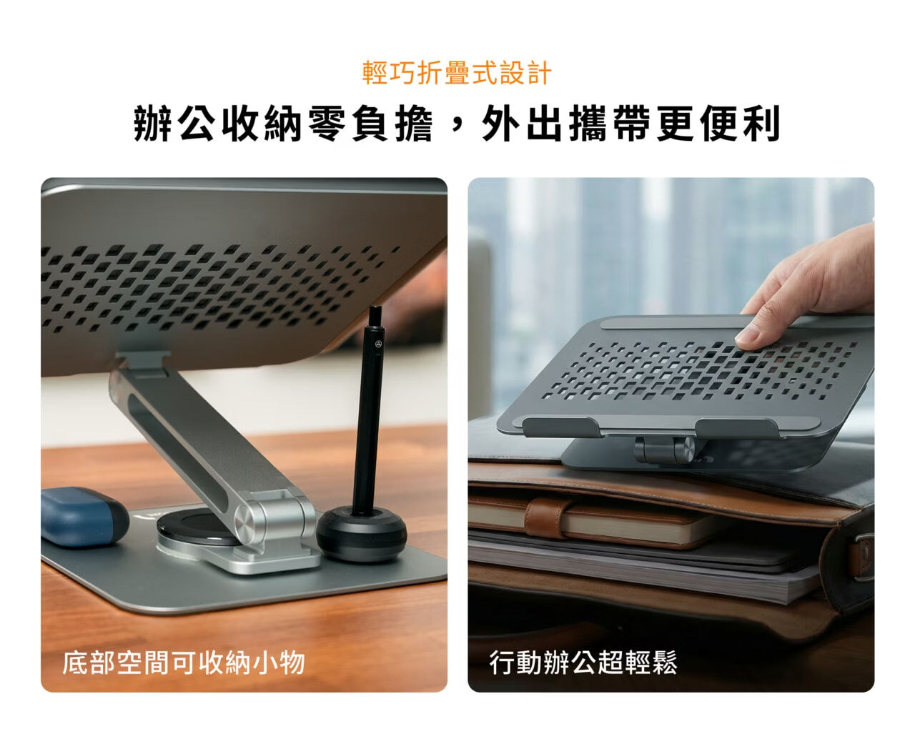•折疊式設計,輕巧好攜帶,無論出差或咖啡廳辦公,都能輕鬆帶著走。