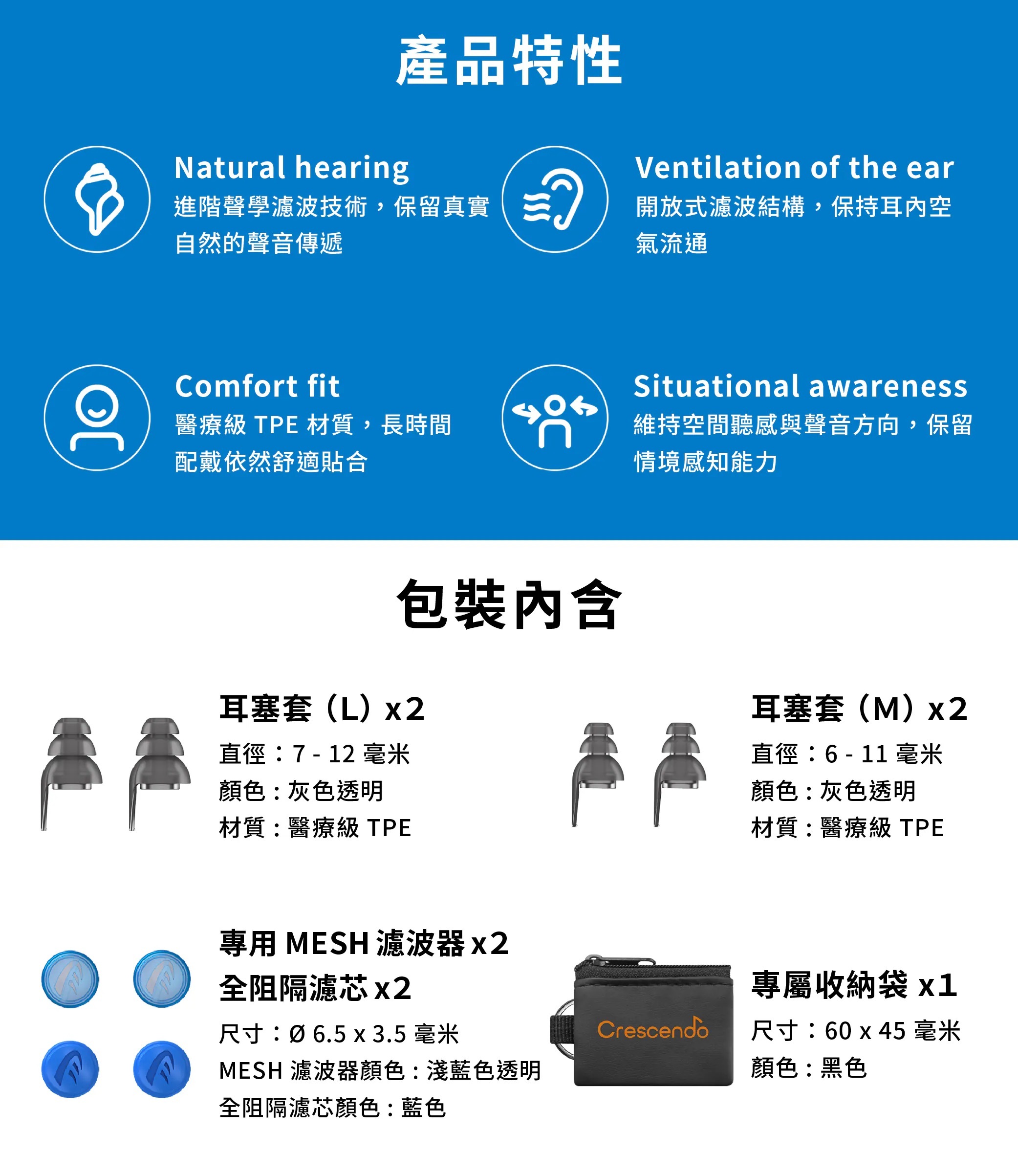 ◆專利 MESH 濾芯 | 保留語音與環境聲音