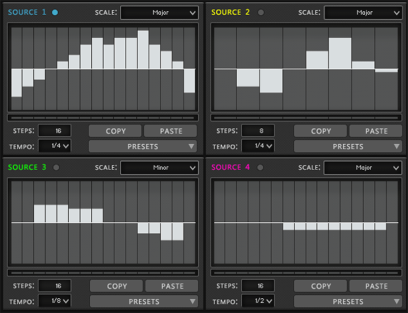 每個聲源都可透過 4 聲道音序器獨立控制,並可限制音高至特定音階,創造更具音樂感的旋律與變化。內建 55 組預設音序樣式,輕鬆上手。