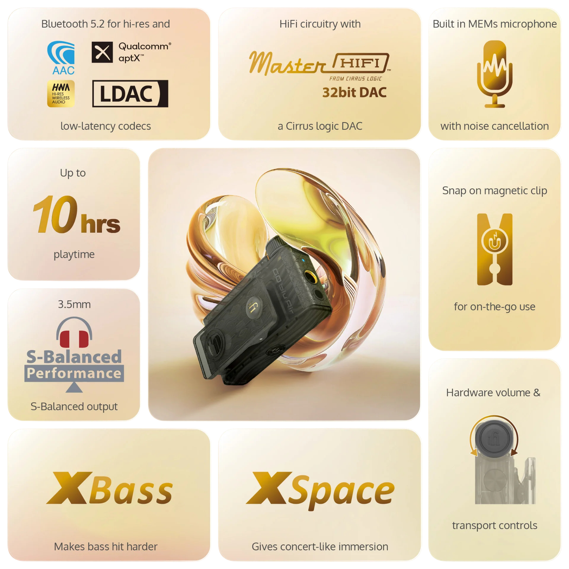 GO blu Air 是一款為日常生活打造的藍牙 DAC。它自然融入你的生活節奏——輕鬆攜帶、簡單使用,隨時準備好播放你最新的歌單。