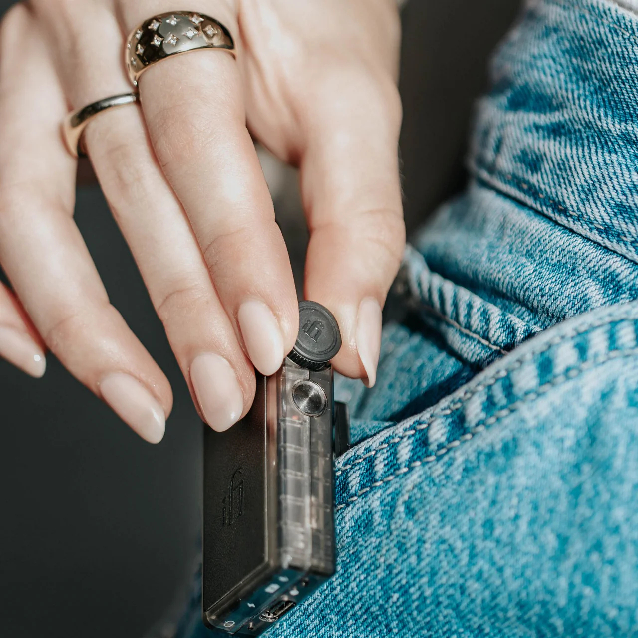 內建的可拆式磁吸夾讓你輕鬆將 GO blu Air 穩固固定在腰帶、包包或外套上——完全不需額外配件。