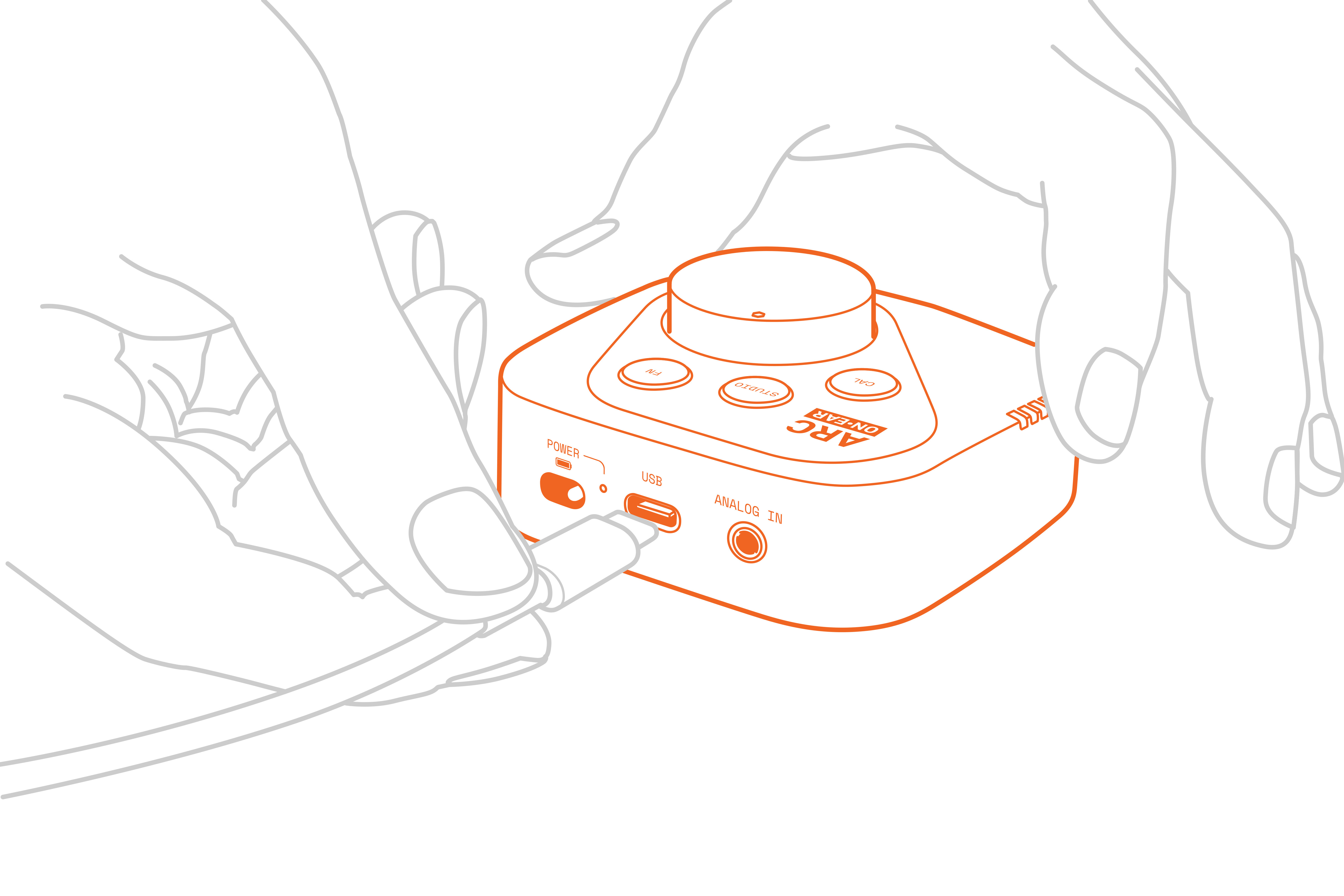 使用隨附的 USB-C 連接線,將 ARC ON•EAR 連接至電腦。
