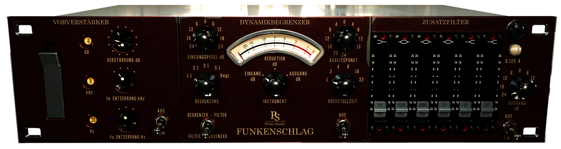 Funkenschlag 是一款單聲道/立體聲通道條插件,內含三組可組合使用的處理工具,為您的音軌增添獨特色彩。