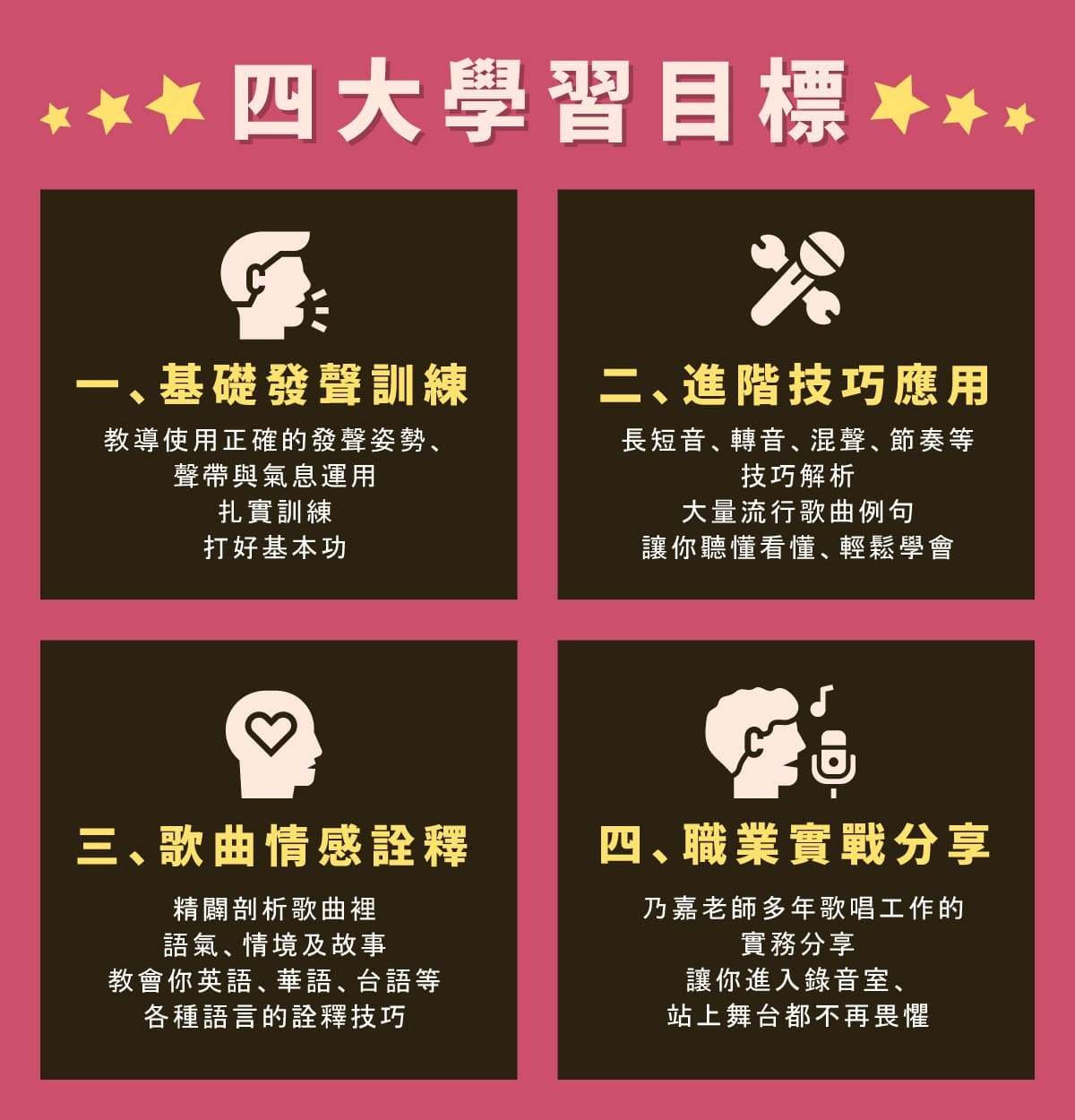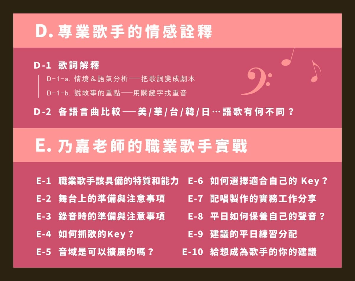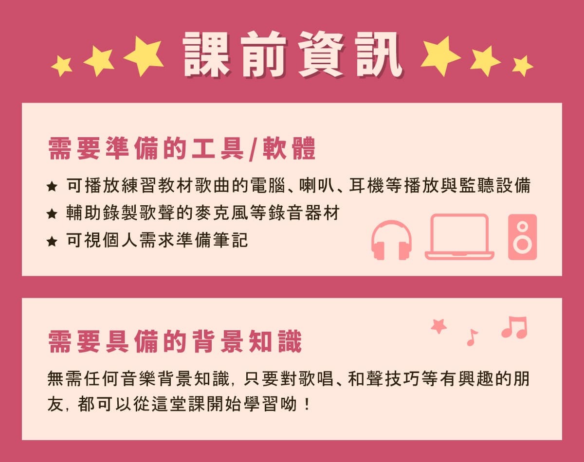 ※擴增個人演唱技巧,提升歌聲質感,朝完美詮釋歌曲演唱邁進