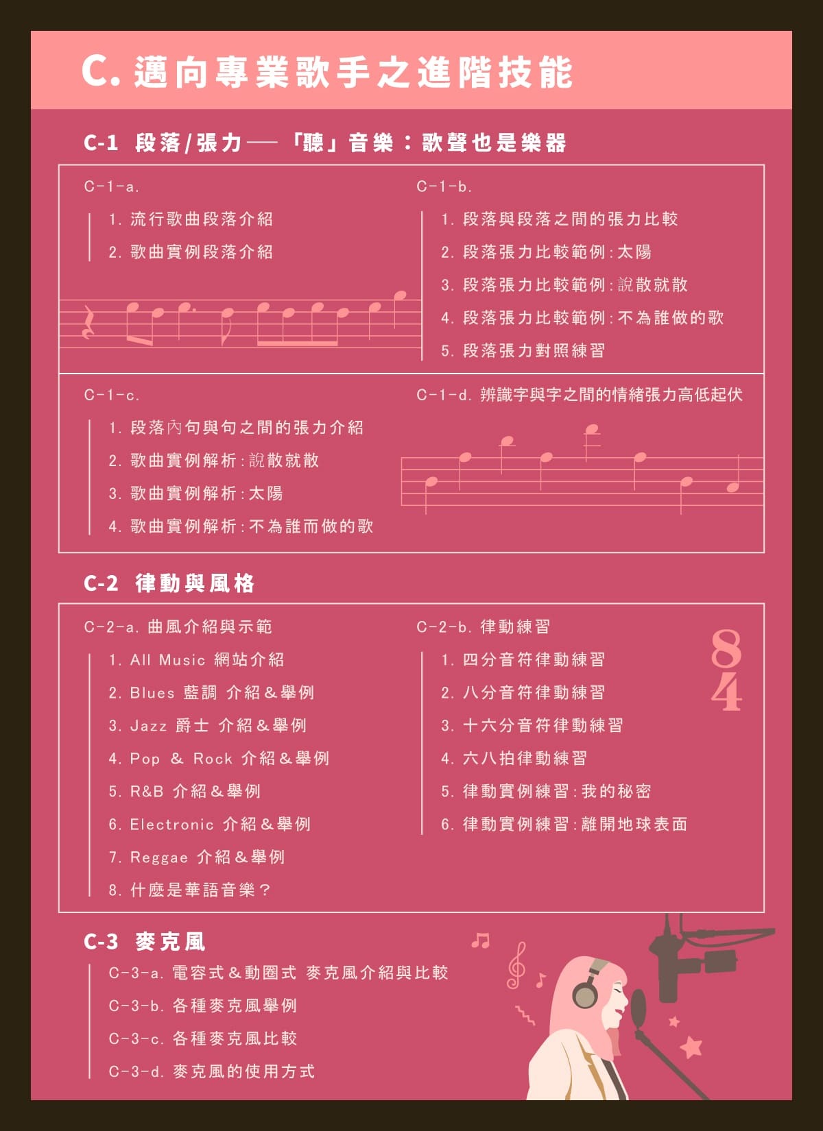※完整 5 大章節、84 節課堂、時數超過 700 分鐘紮實歌唱訓練!