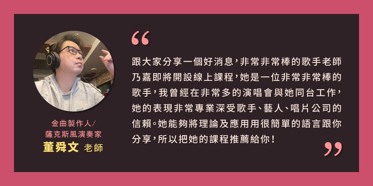 ※專業聲音教練 陳乃嘉老師 不藏私完整傳授提升歌藝方法
