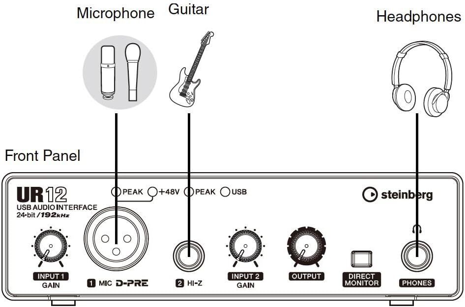 ●1 個麥克風輸入(XLR)與 1 個高阻抗樂器輸入(TS),2 個 RCA 輸出端子