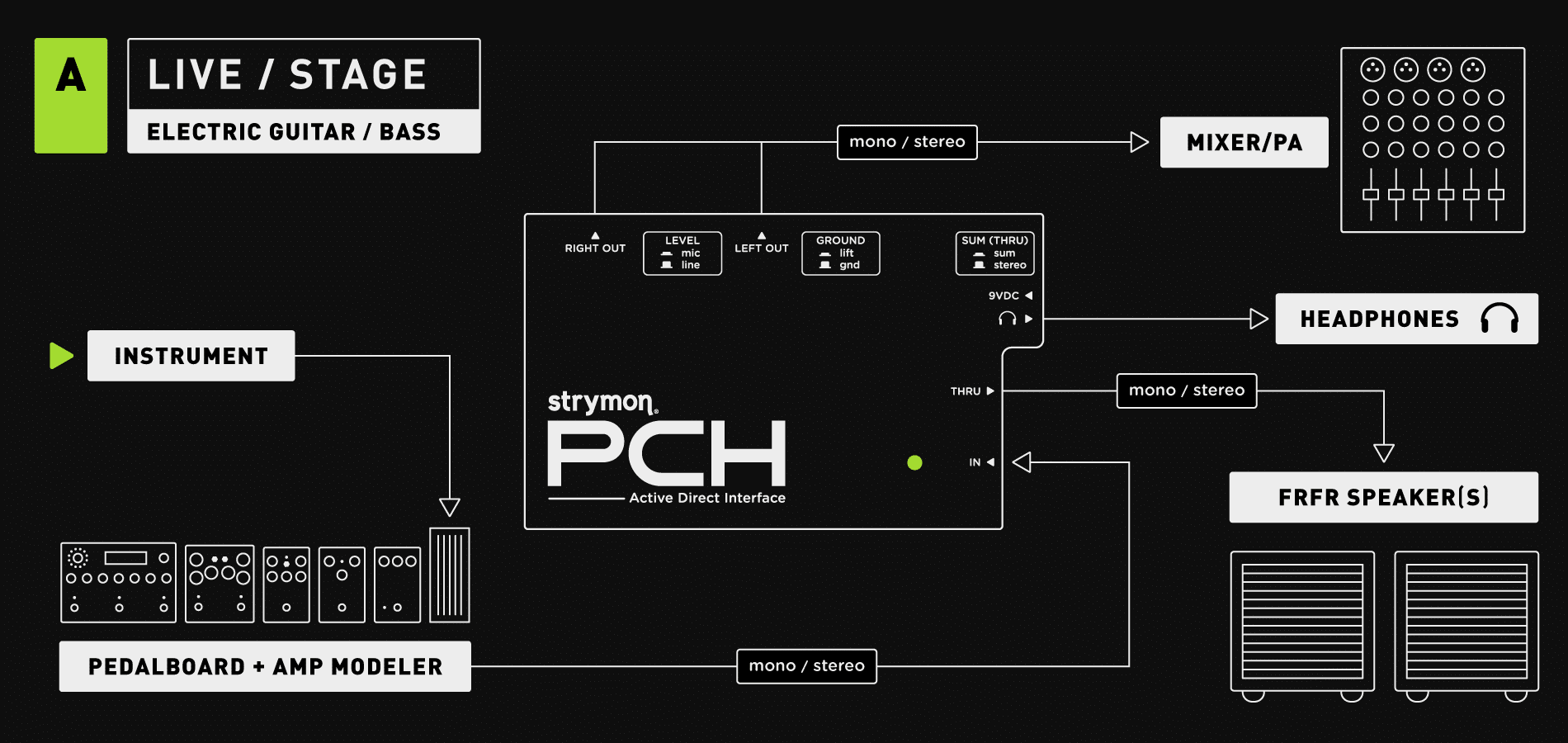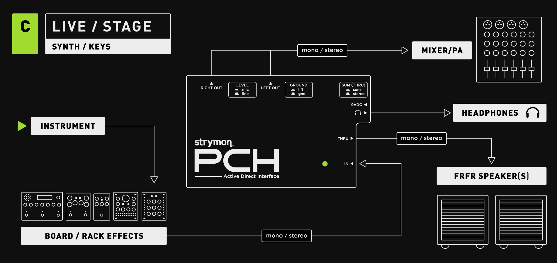 無論你演奏的是哪種樂器或音樂風格,只要需要將非平衡輸出連接至 PA、錄音介面或全頻平直響應音箱系統,PCH 都是追求絕對透明立體聲直通的終極選擇——同時也是唯一能透過內建耳機擴大機即時監聽的 DI。