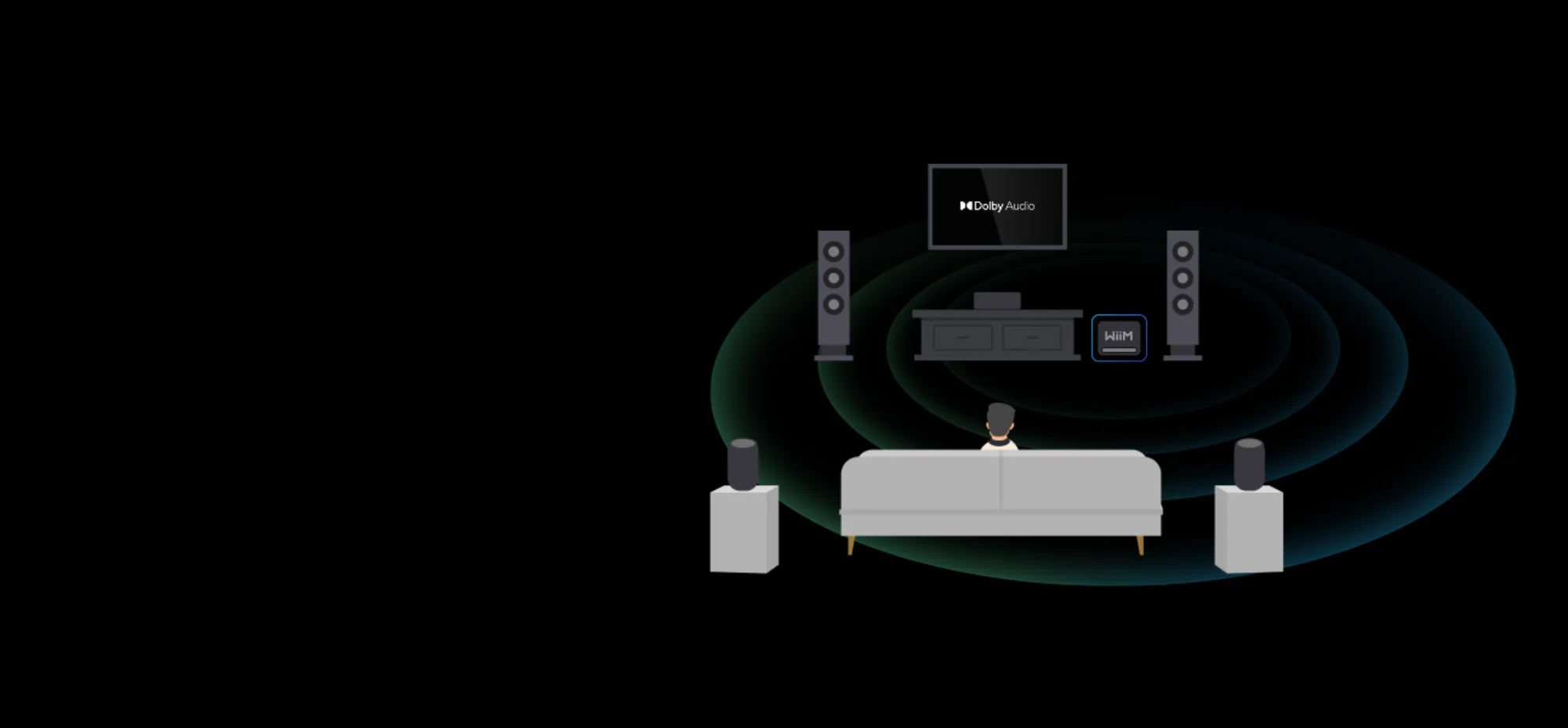 您可以透過 Wi-Fi 無線連接至 WiiM 的串流播放器、擴大機或喇叭;也可使用 RCA 輸入,連接任何具備超低音輸出(Subwoofer Out)的第三方設備。