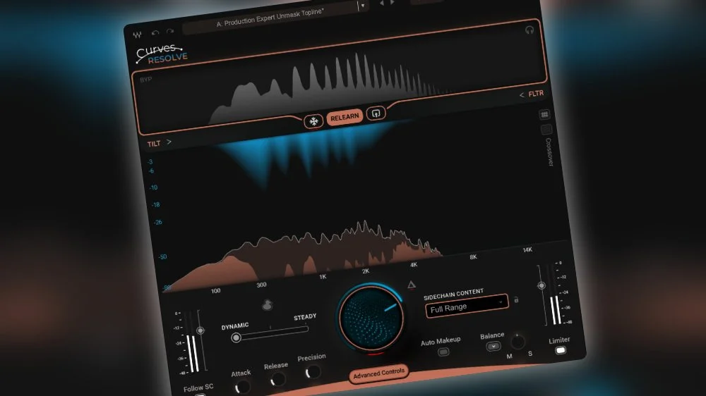 Curves Resolve 透過頻率導向的處理,讓關鍵元素能夠自然地站到前景。在影片中,我們實際將它應用在鍵盤與吉他的子混音上,讓主旋律元素得以站上舞台中央。