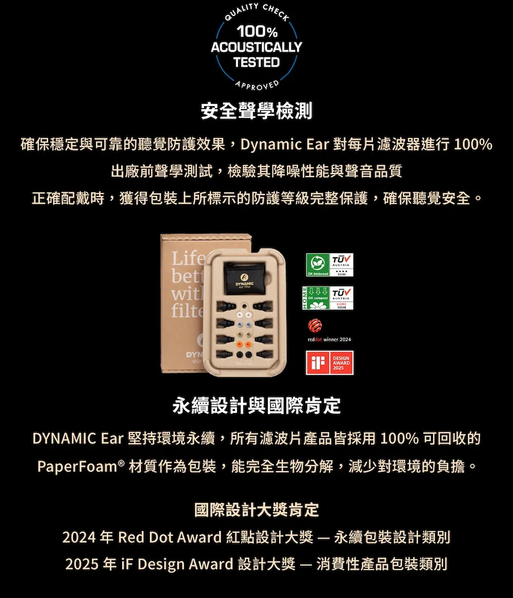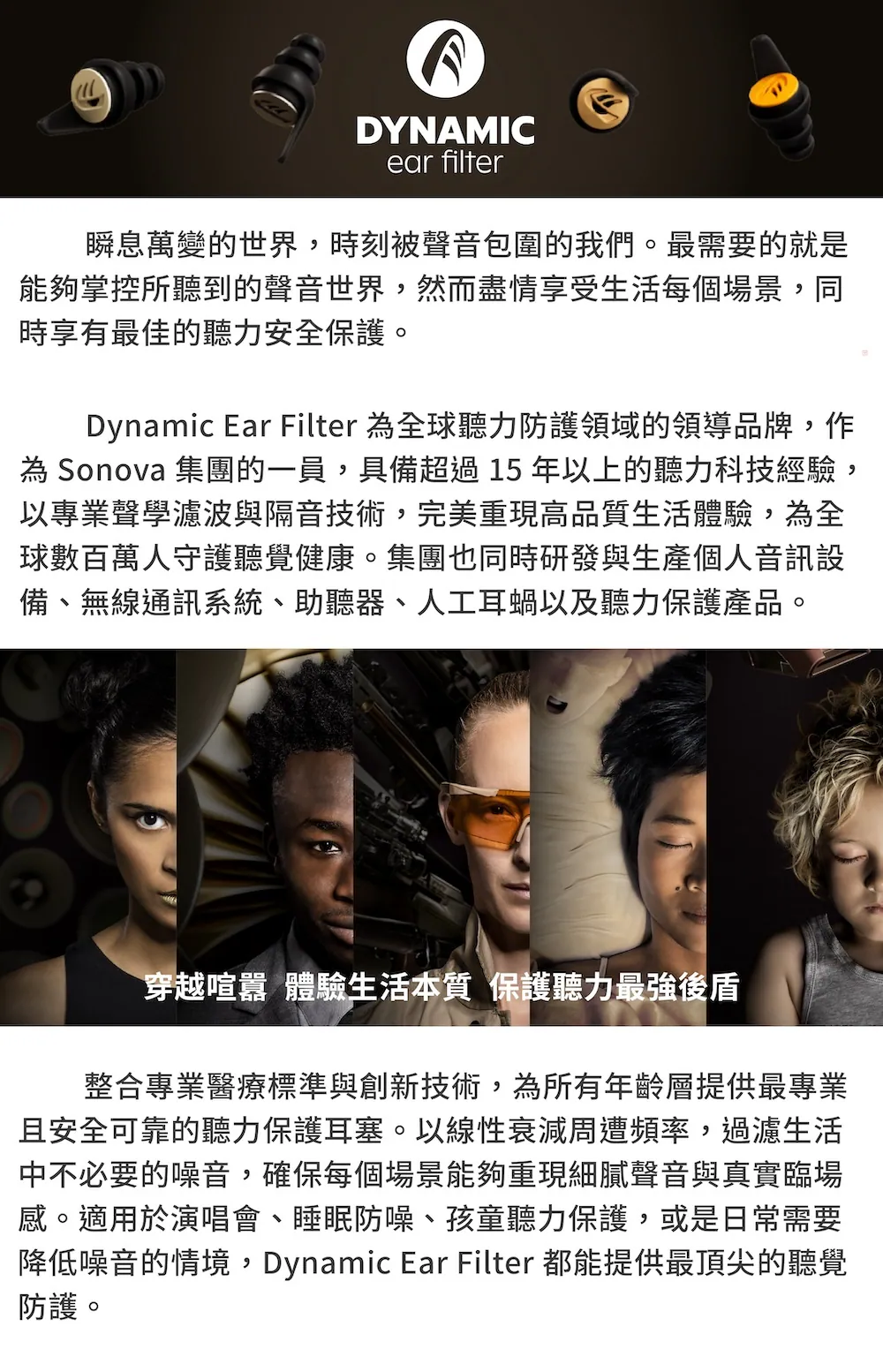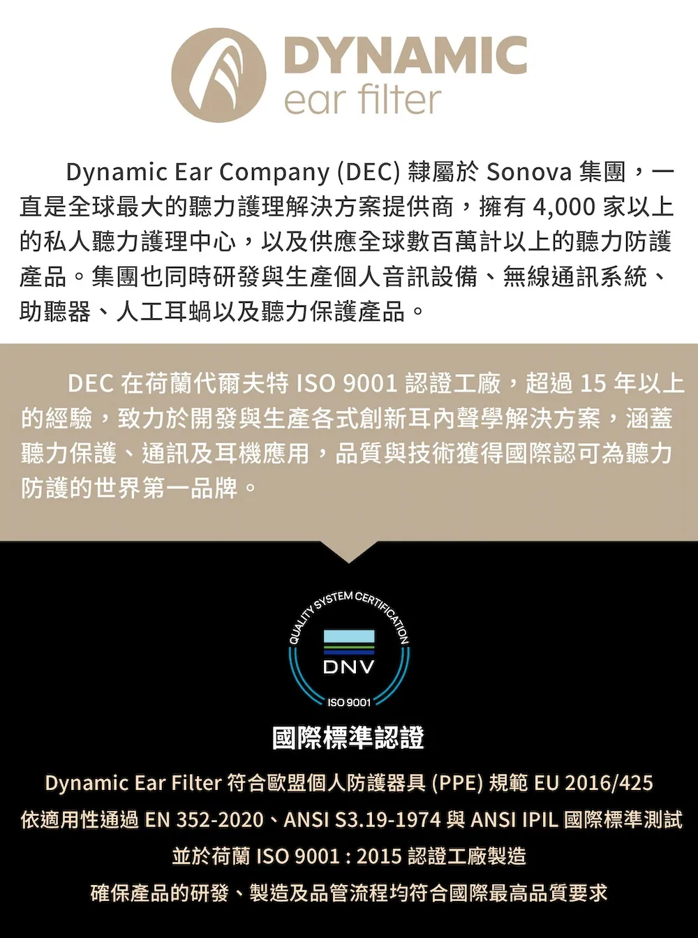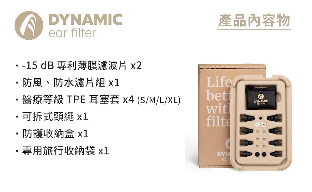 Dynamic Ear Filter 基礎防護降噪耳塞組 (-15dB 專利薄膜濾波片)