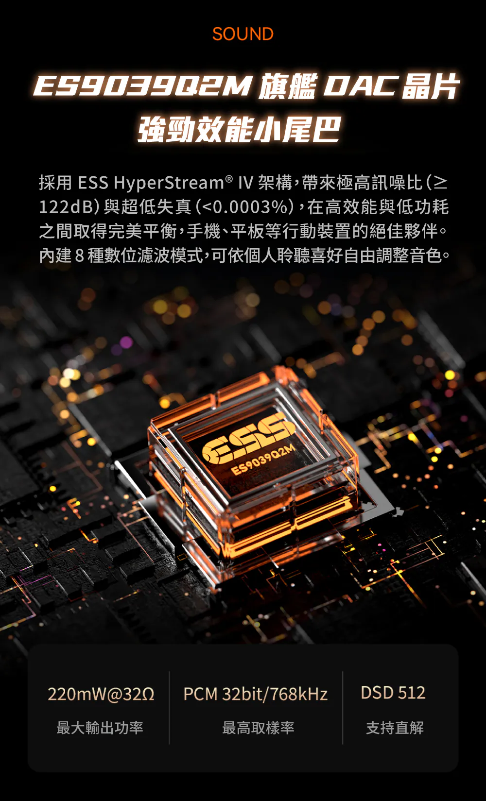 ● 搭載旗艦級 ES9039Q2M 解碼晶片