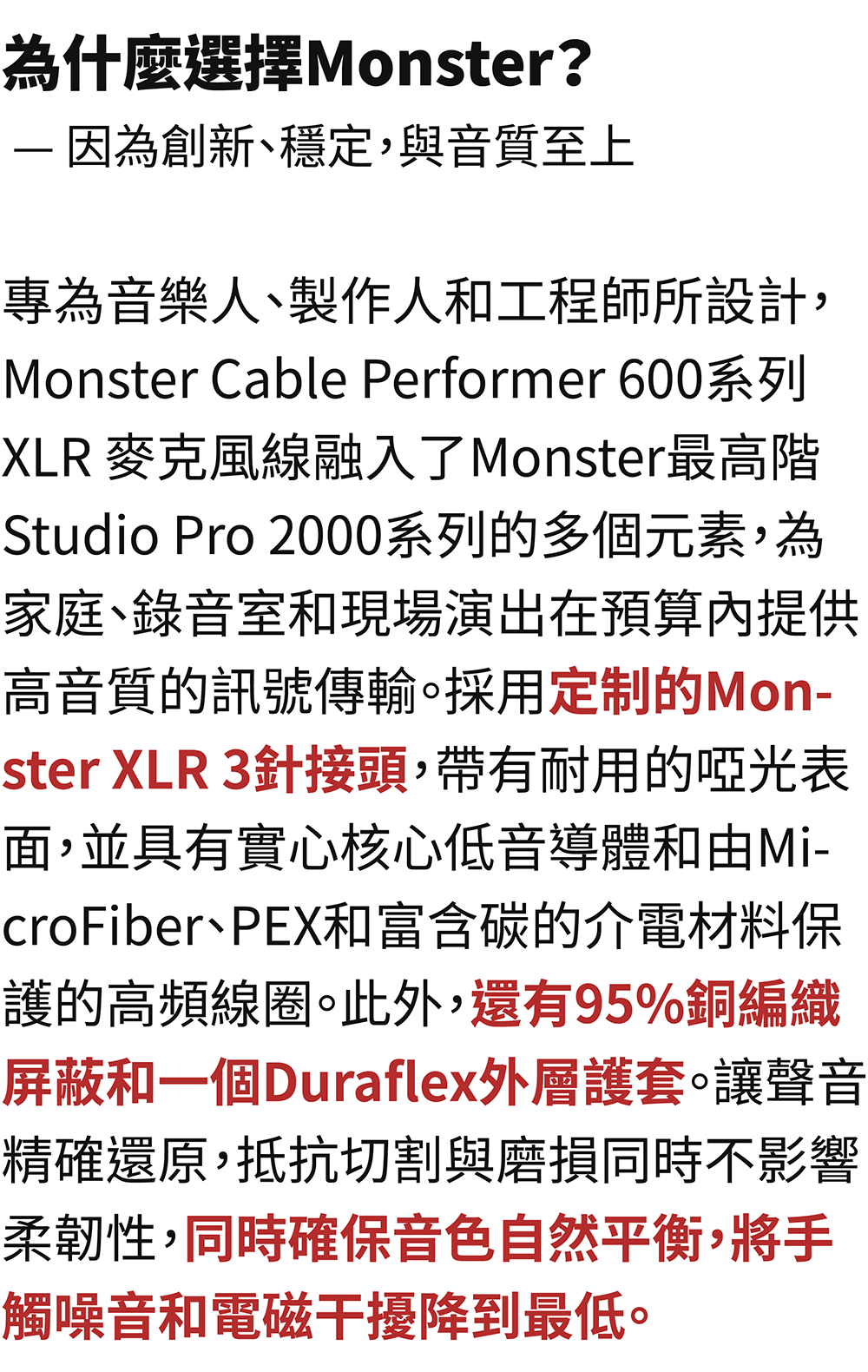 Monster Cable Prolink Performer P600 XLR 麥克風線